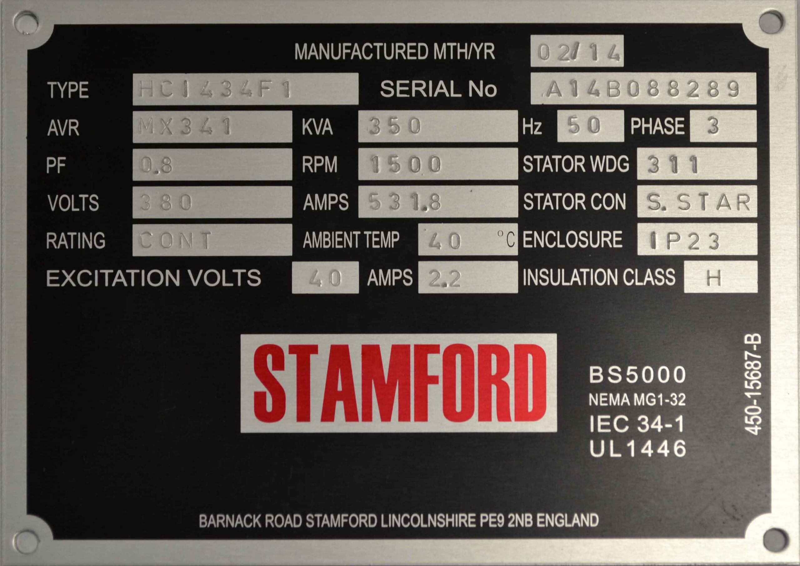 Stamford generator HCI434F1