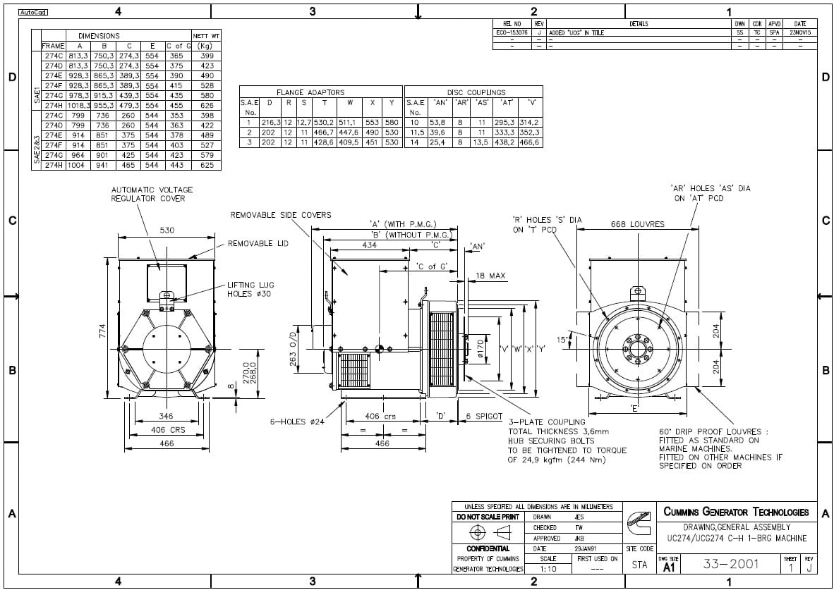 Stamford generator UCI274H1